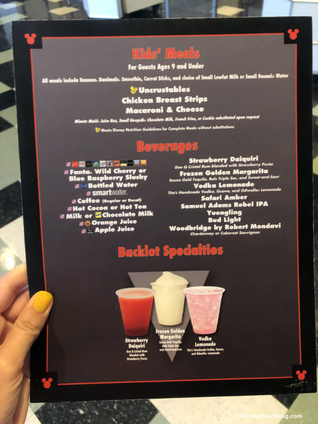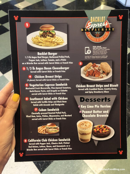 We popped in to check on the menu at Backlot Express. There’s been only one major change to the menu…