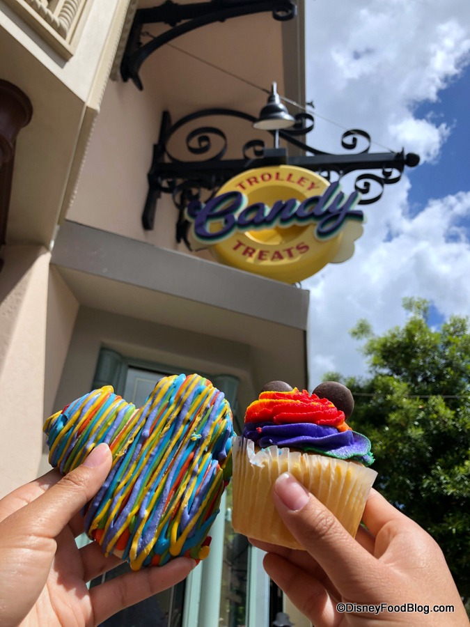 In honor of Pride month, Rainbow treats currently spotted in the confection case include a Rainbow Cupcake and a Rainbow Mickey Mouse Sugar Cookie.