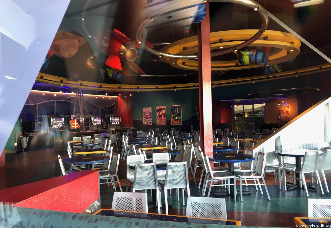 What was originally intended to be a “temporary” dining overlay of Redd Rockett’s Pizza Port for last year’s Pixar Fest is now a well established location newly reopen post-refurbishment in Tomorrowland.