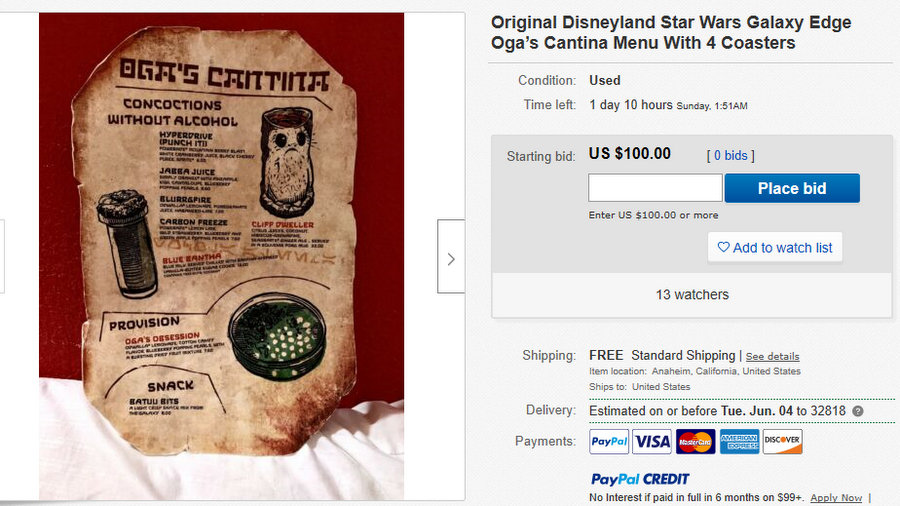 A posting for an original menu for Oga’s (which can be yours at a starting bid of 100 smackers) is now listed on the resale site.