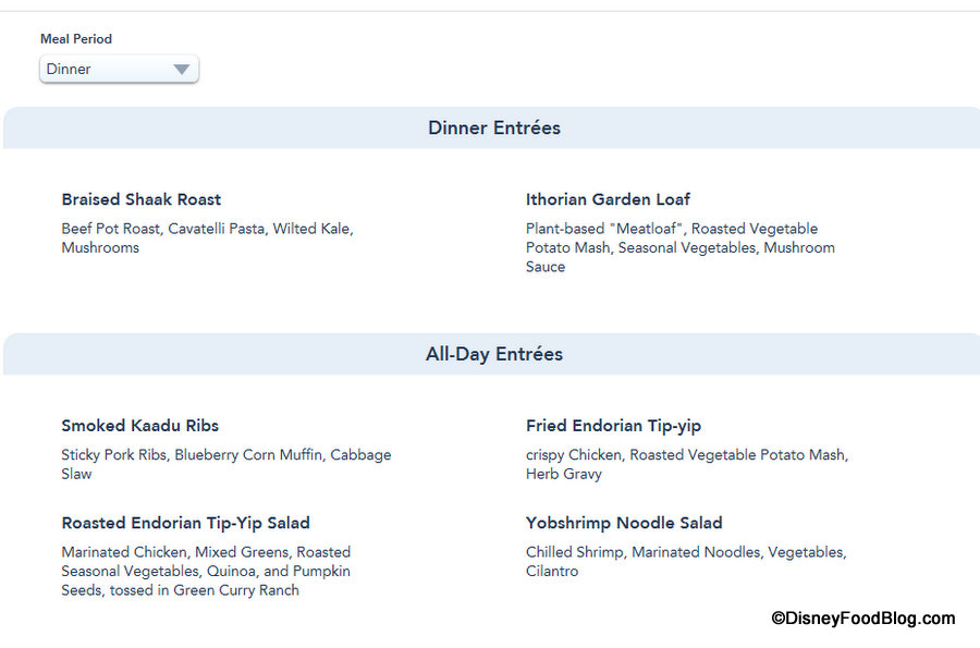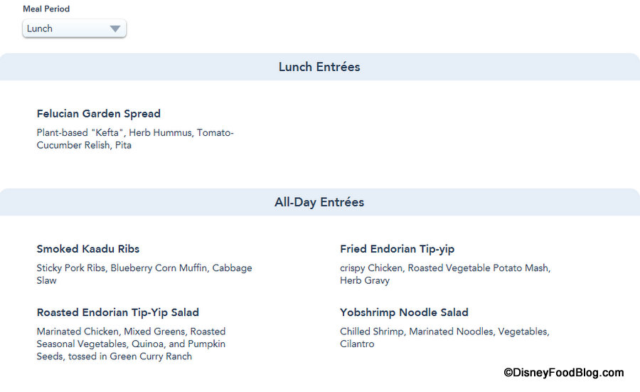 offers two of its own exclusive menu items with the Braised Shaak Roast and the Ithorian Garden Loaf.