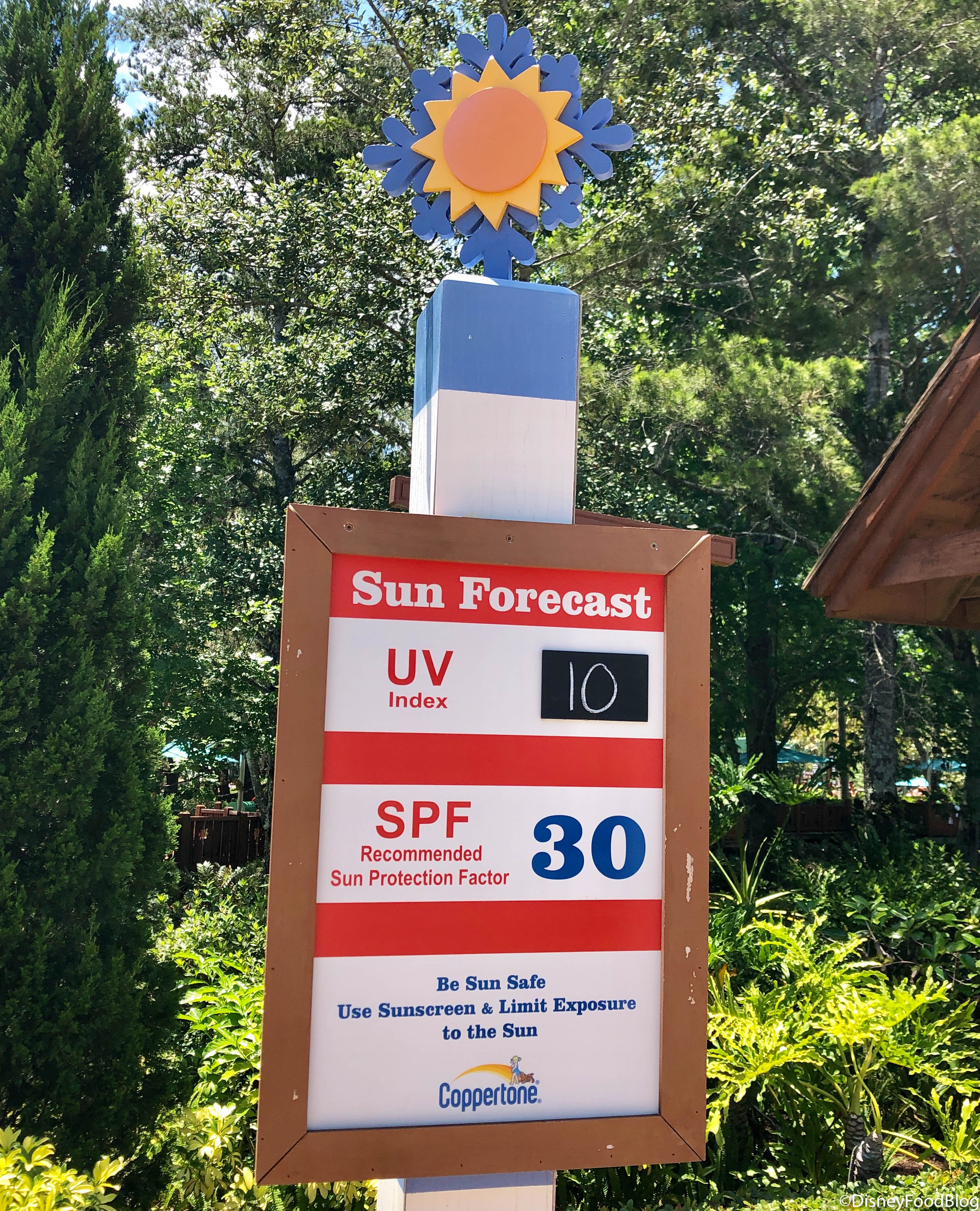 Sun Forecast reports can also be found in the park. This is a great way to see what weather to expect for the day. The sign will also tell you a recommended SPF.