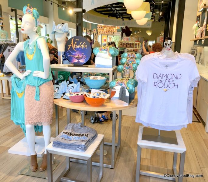 Meanwhile in Aladdin merchandise news: World of Disney has a fun display of shirts, ears, hats, and more!