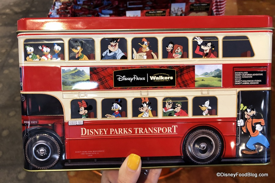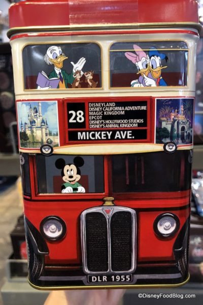 New in Epcot today (according to a Cast Member we spoke with) is this adorable new Double Decker Disney Parks Transport tin bus packed full of yummy Disney Parks Mickey Shortbreads by Walkers of Scotland!