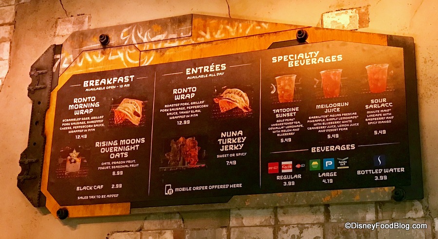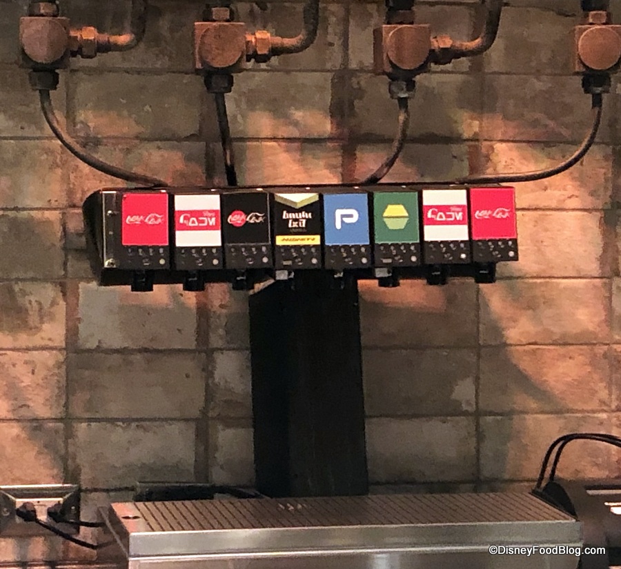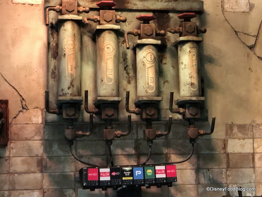 The location also serves fountain beverages and you have GOT to check out the soda fountains with drink names in Aurebesh like the exclusive to Galaxy’s Edge Coca-Cola bottles!