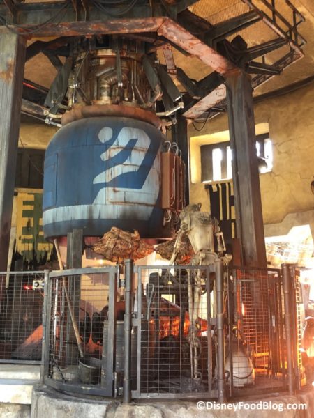 You’ll find your eyes are greeted by a podracer engine directly in the center hanging above a grilling pit filled with meats. The next treats are for your ears: be sure to listen as you may hear a bit of crackling and revving while everything is being cooked up!