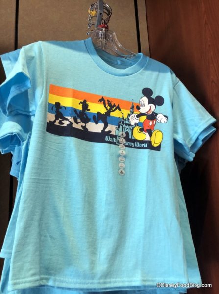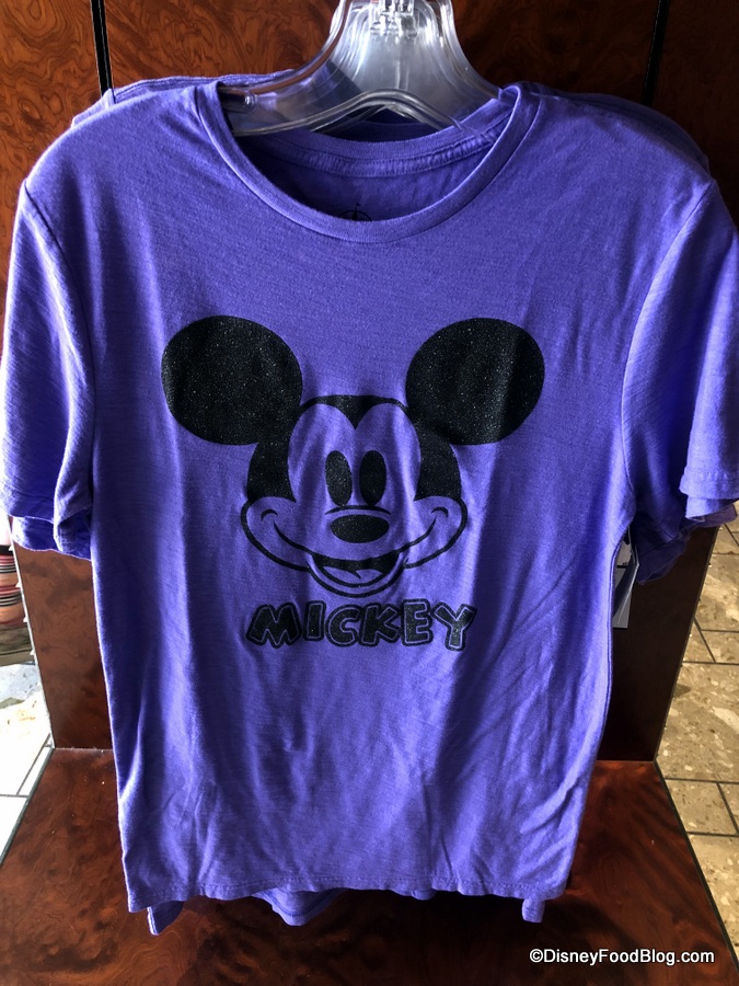 Merchandise finds from our most recent visit include a bright and bold purple Mickey shirt for adults.