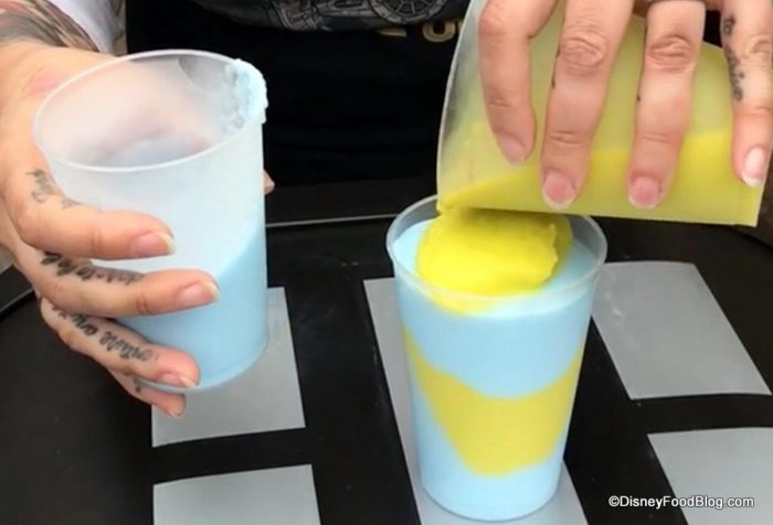 Milk Stand is located in the First Order area of the Outpost, and it serves up two things: Blue Milk and Green Milk. Click here to see our first review of these non-dairy, soft-frozen drinks!