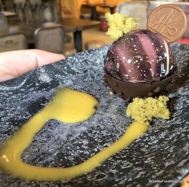 The Batuu-bon was a dense, brownie-like cake that reminded us of flourless cake. (Note, this is not listed on the online menu as Gluten/Wheat-Allergy Friendly, so check with the cast members when you order!)