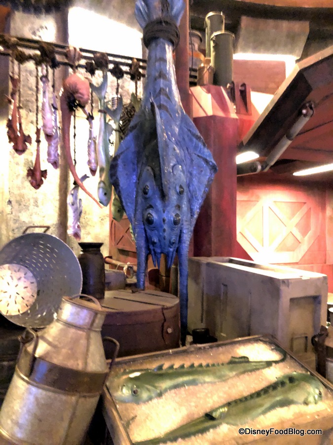 Other decor elements include alien creatures — clearly meant to represent ingredients on the menu. Most creatures look fish-like, and some alien fish are also “on ice” as decor, too.