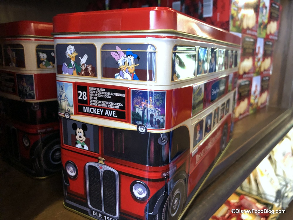 A tasty and adorable souvenir recently made its debut in Epcot! You can now grab a Double Decker Disney Parks Transport tin bus, packed full of delicious Disney Parks Mickey Shortbread by Walkers of Scotland!