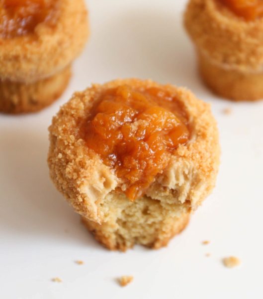 This new cupcake is a brown sugar crumb cake with a pie crust crumble. It is topped with cinnamon-spiced peaches and brown sugar buttercream frosting! YUMMY!