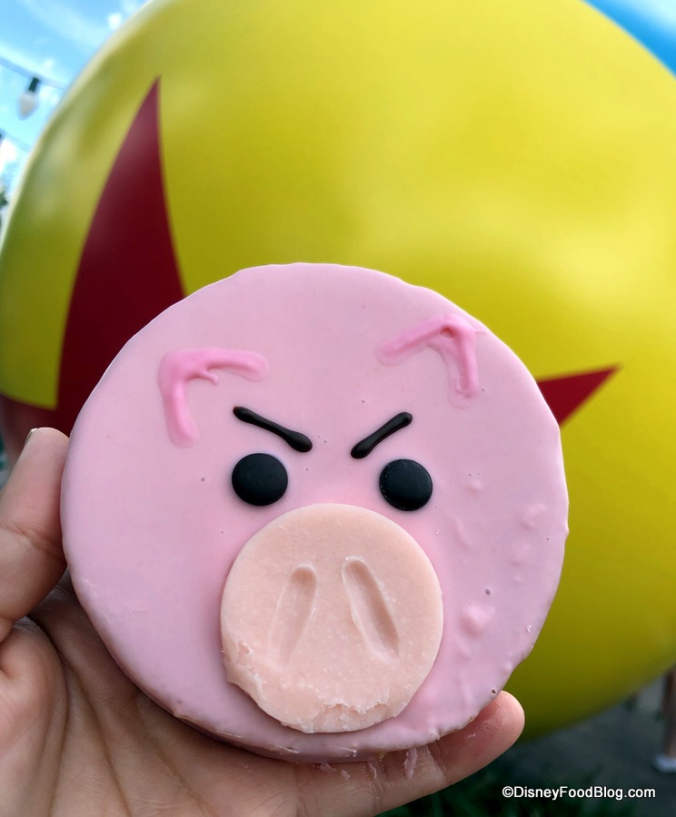 You’ll find the next item at Fairfax Fare on Sunset Boulevard, in the Trolley Car Cafe on Hollywood Boulevard, and at PizzeRizzo which is currently open on Grand Avenue. Hamm from the Toy Story films has arrived in cookie form! Read our review of the Hamm Sweet ‘n Tart Cookie here.