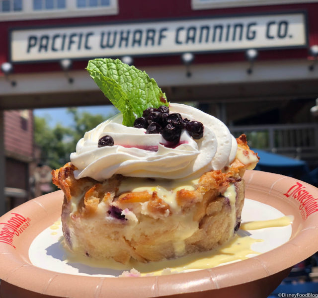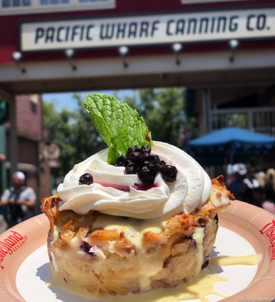 The seasonal bread pudding from Pacific Wharf Cafe is $5.39 (before you use that Annual Passholder Discount, of course). Think that Pacific Wharf Cafe may just be a stopping place on your next Disneyland vacation? Then, make sure you read our most recent review!