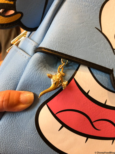 Again, we found this backpack at Uptown Jewelers in Magic Kingdom, though we assume that he has hopped on the magic carpet to fly into other locations as well. The Genie Loungefly backpack can also be purchased on shopDisney.com. In both locations, it costs $80 before tax.