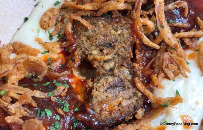 The sweet BBQ sauce is a great accompaniment to those crispy onions and creamy (yes, really!) grits. But the star — as it should be — is the burnt ends meatballs.