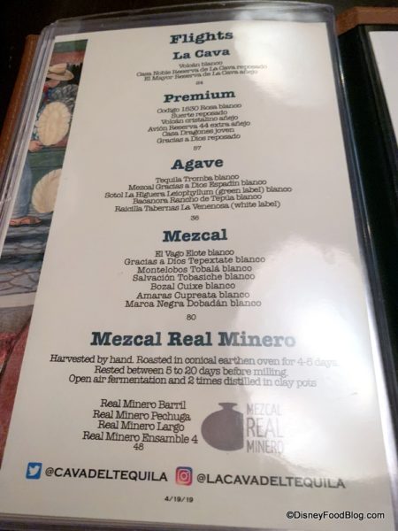 Inside La Cava del Tequila, we noticed a recent addition to the flight menu – a Mezcal Real Minero Flight.