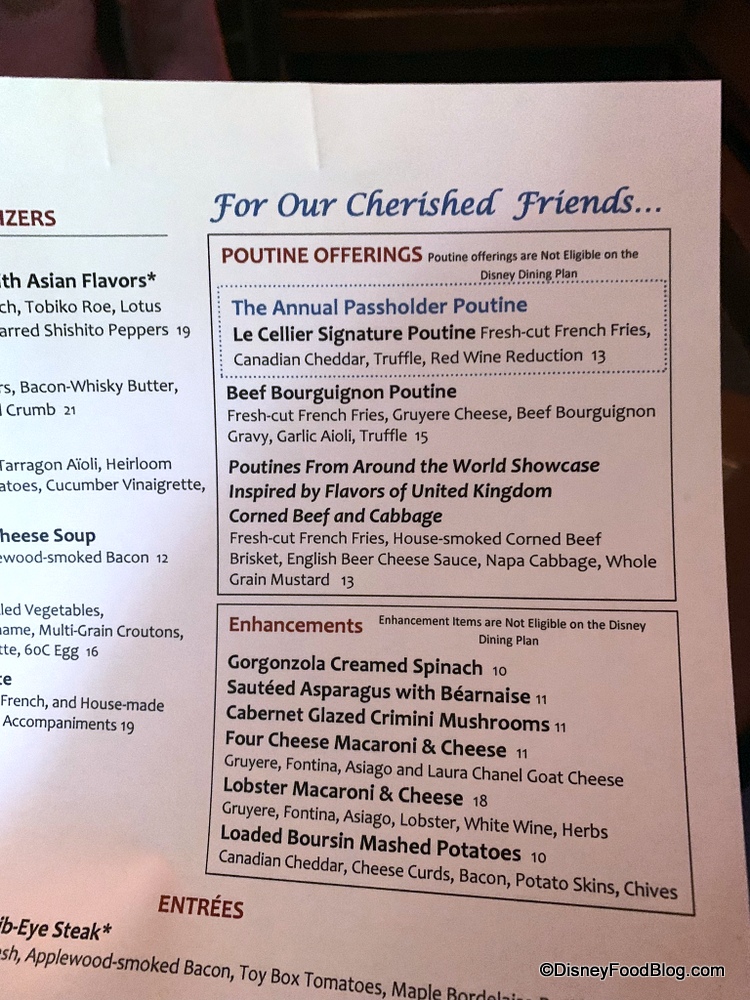 Continuing our journey in the Canada Pavilion, we noticed a few menu changes. Starting things off at Le Cellier, the new monthly Poutine featuring corned beef and beer cheese sauce hails from the United Kingdom, replacing Norway’s version.