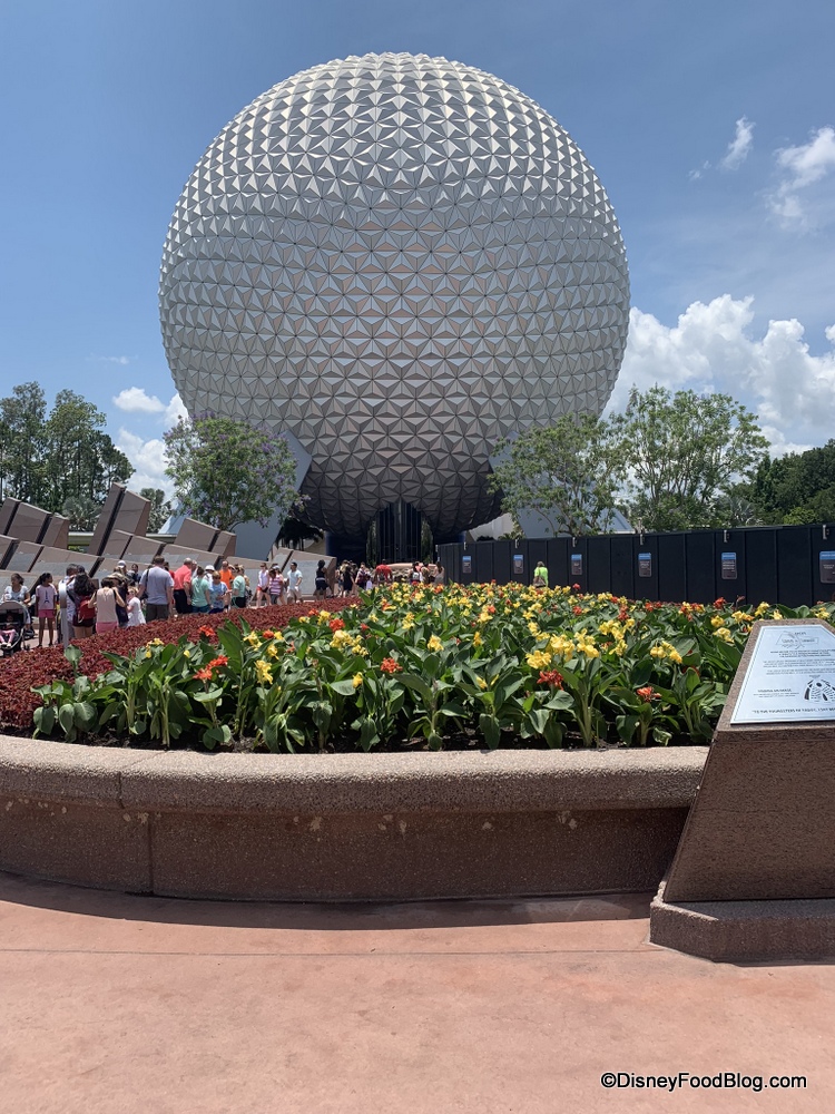 Since Epcot’s Flower & Garden Festival ended on June 3, the garden display at the main entrance is no longer there.