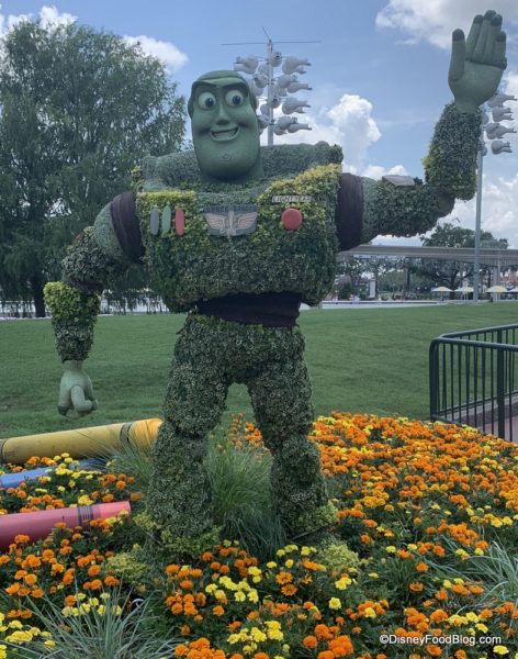 If the topiaries are still there during your Epcot visit, be sure to snap some photos with Buzz Lightyear and his Toy Story pals!