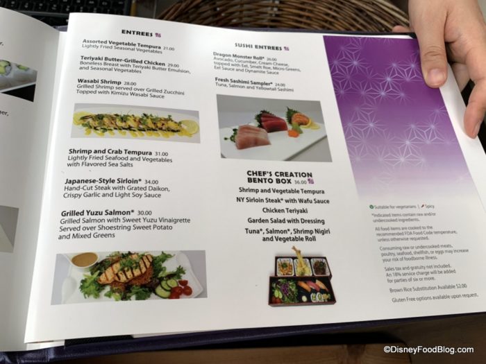 According to a Cast Member, Toyko Dining made several menu additions a few weeks ago. Wasabi Shrimp is now available for $28.00 and Grilled Yuzu Salmon is on the menu for $30.00.