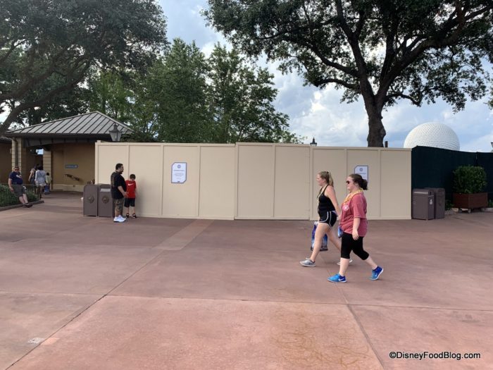 The entire walkway past Refreshment Port into Future World is currently blocked off. It looks like they are removing the festival playground and possibly the kiosks. Keep that in mind if you’re visiting Epcot soon!