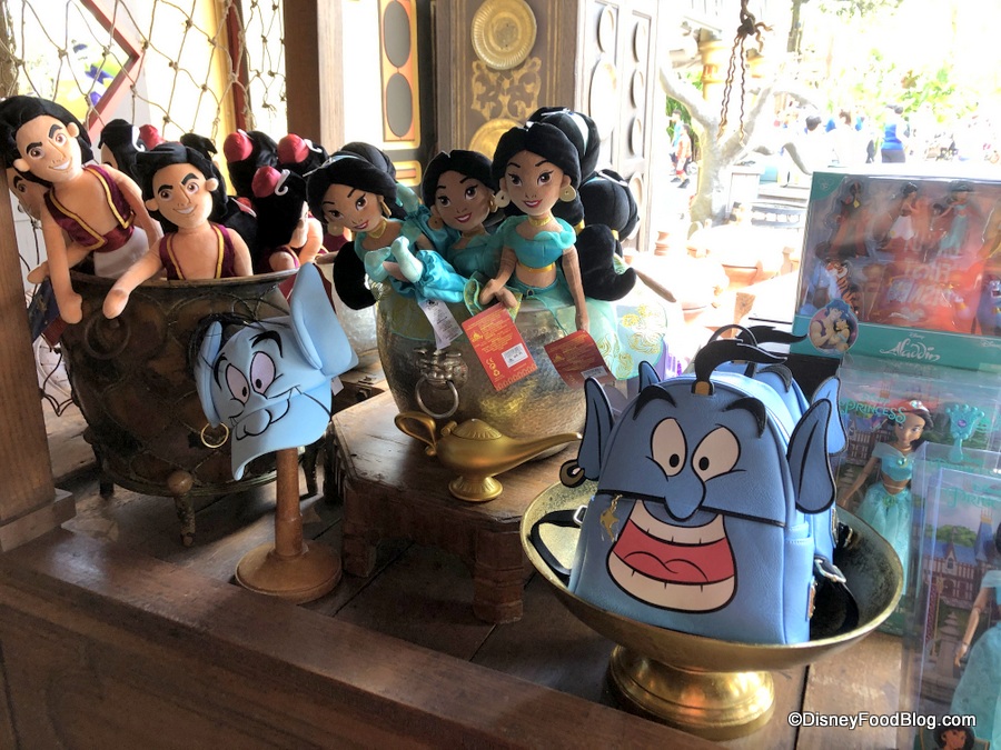 In Adventureland, more Aladdin merch is available at Agrabah Bazaar. (There’s the Genie backpack again!)