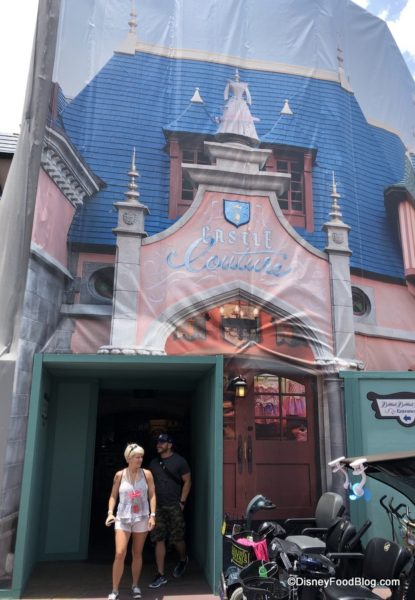And now for the Fantasyland part of our Park walk. Castle Couture is under scrims as the Park expands the number of stations in its popular Bibbidi Bobbidi Boutique.