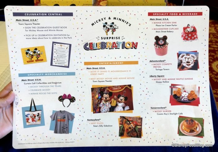 If you duck into Town Square, you’ll find tips on how to keep celebrating Mickey & Minnie’s Surprise Celebration!