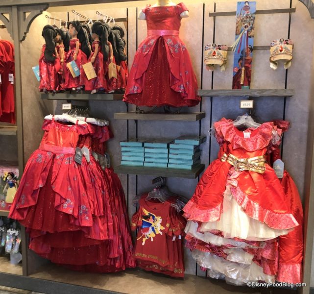 Of course, “now that [we’re] here, there’s a mission at hand”: to buy as much Elena of Avalor merch as possible. Dresses, tiaras, and soft dolls are available.