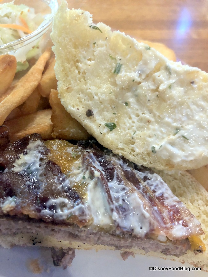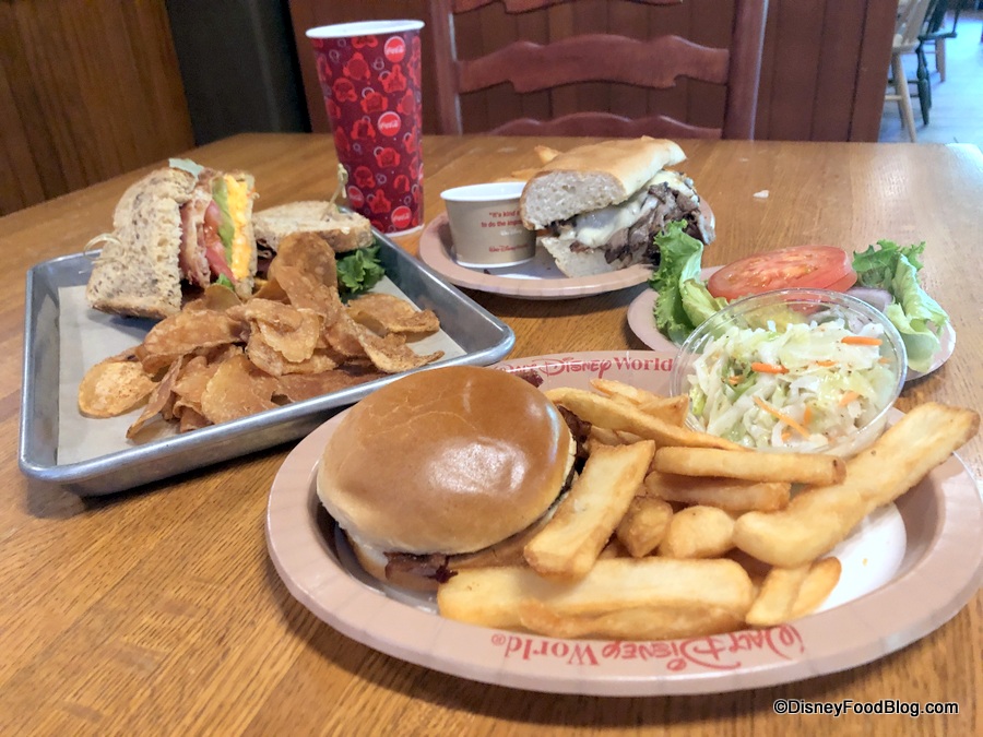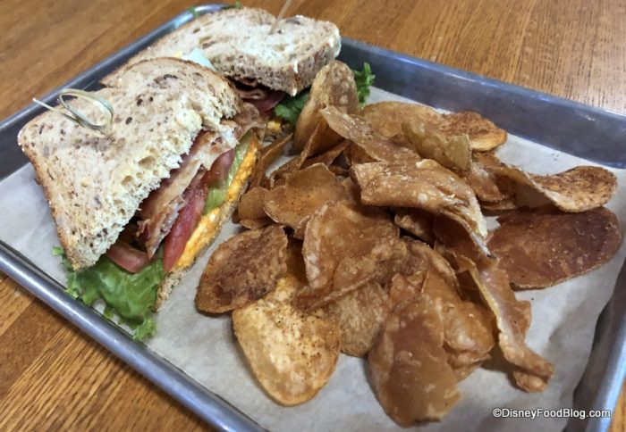 A couple notes about this sandwich: they were already premade behind the counter on our visit, so if you need to make any substitutions or changes, you’ll need to ask if it’s possible. Also, the BLT comes with house-made chips, but the cast member mentioned we could sub in fries; we’d just have to go over to the Grill Shop to get them. Vice versa, if you prefer chips to fries but you’re at the Grill Shop, request to pick up some chips next door at the Sandwich Shop.