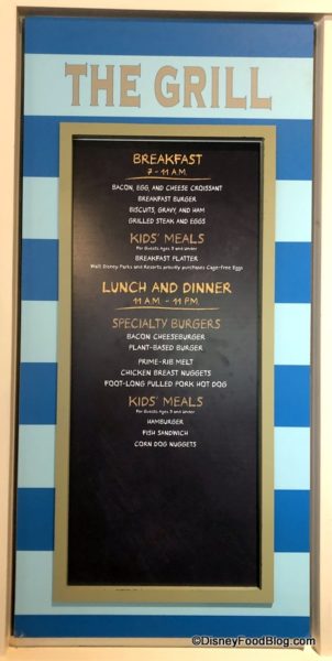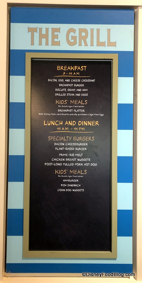 At the Grill Shop, find hot sandwiches, burgers, and more (including a Fish Sandwich and Corn Dog Nuggets for the kiddos and Chicken Nuggets, a Hot Dog, and vegan burger for grown ups).