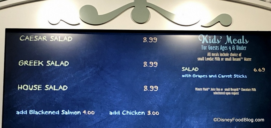 As mentioned, Create Your Own Salad is not currently an option. Diners are limited to Caesar, Greek, and House Salads. (We heard several people lamenting the loss of the Create Your Own option, so we’ll watch to see if it returns.)