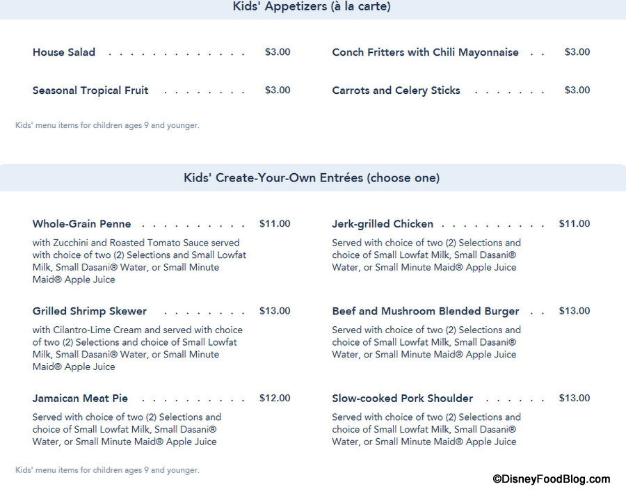 The Kids’ Menu, however, has not seen much change, with the focus staying on the Kids’ Create Your Own Meals with much of the same choices.