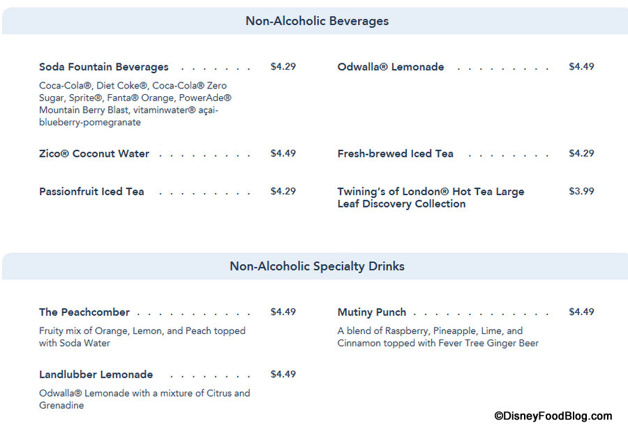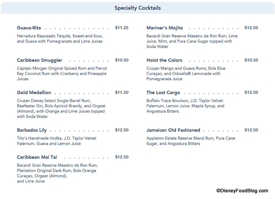 Ditto for the drinks, with both Specialty Cocktails and Mocktails presenting the same offerings as before.