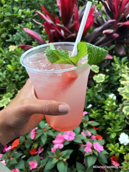 First, we’ll fortify ourselves with some fresh eats! Disneyland Park’s Mint Julep Bar is offering up a seasonal Watermelon Mint Julep! Because the only way to make a mint julep even more refreshing is to pump that juice full of watermelon! See our review here!
