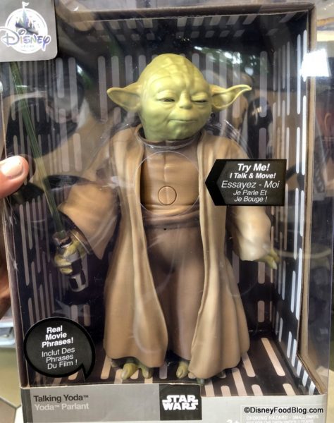 If you’re a collector of figures, World of Disney has lots of options. Yoda is a fan favorite, of course, and he talks and moves. (No ear hair in sight, though.)