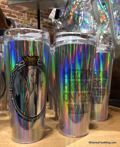 The iridescent line is inspired by the Evil Queen’s magic mirror in Disney’s “Snow White and the Seven Dwarfs,” as represented perfectly on this tumbler. ($22.99)