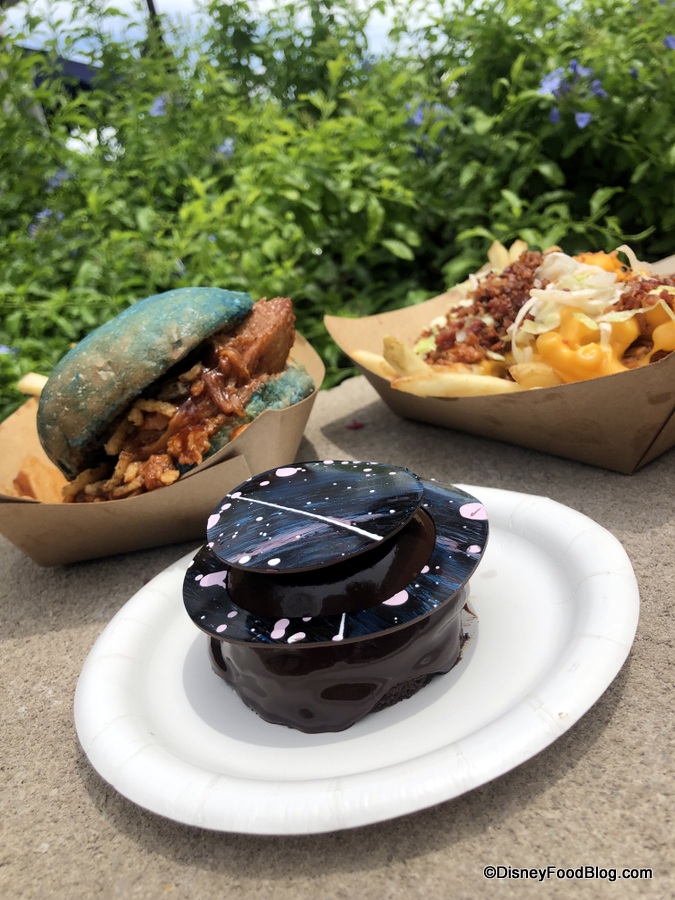 Cosmic Cake ($4.99 or a Disney Dining Plan snack credit) is a dome of chocolate cake covered in more chocolate. And we’re giving you two warnings with this one.
