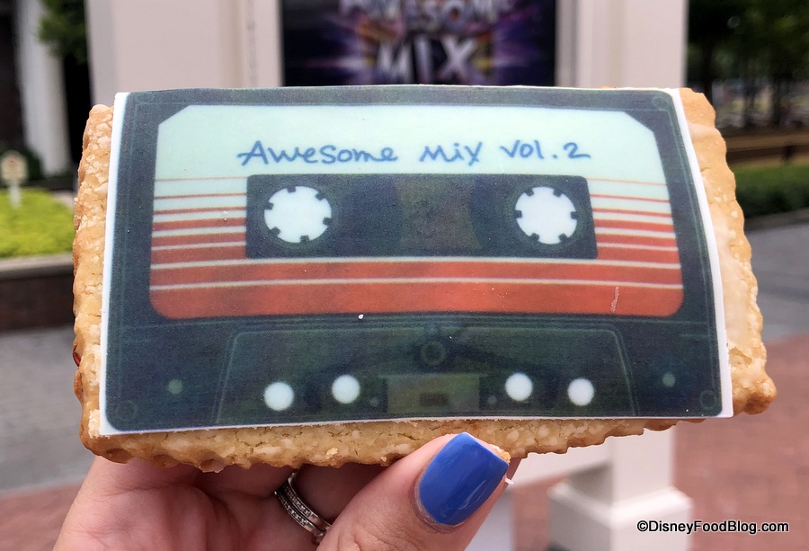 This is also where you can grab a Mix Tart ($5.00 or a Disney Dining Plan snack credit)! This strawberry-filled shortbread cookie is topped with a fondant Awesome Mix Tape.