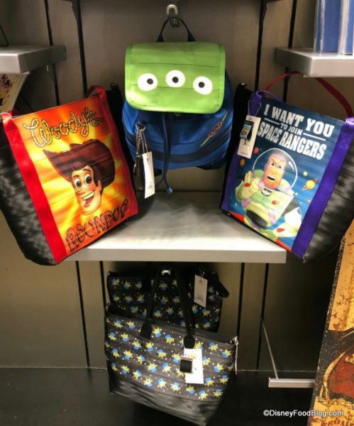 Continuing our treasure hunt in Beverley’s, we spotted new items from the Toy Story Harvey’s collection! A double-sided bag features Woody and Buzz Lightyear posters on either side and includes a character keychain set.