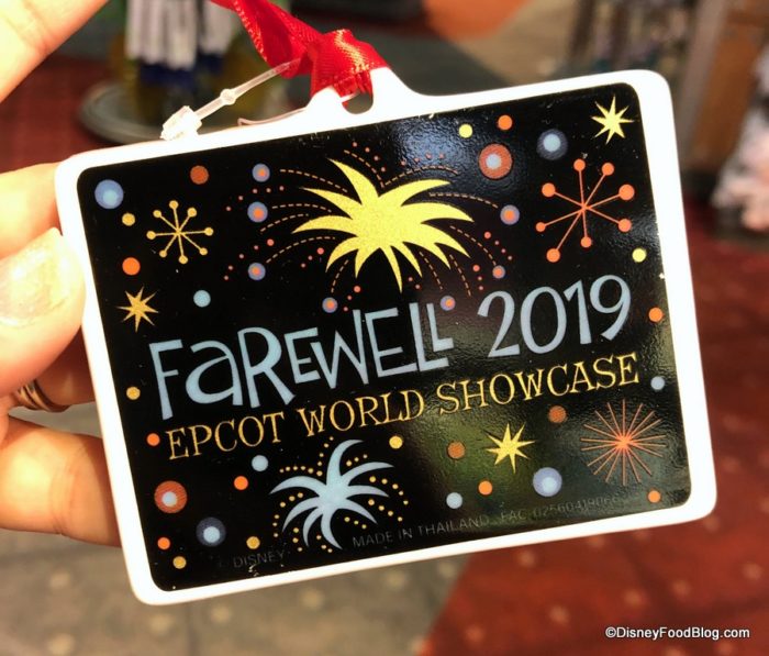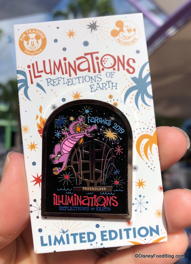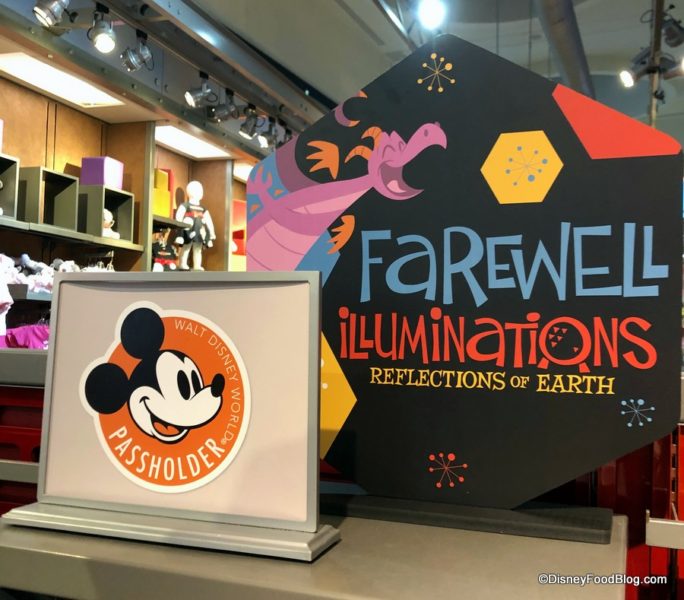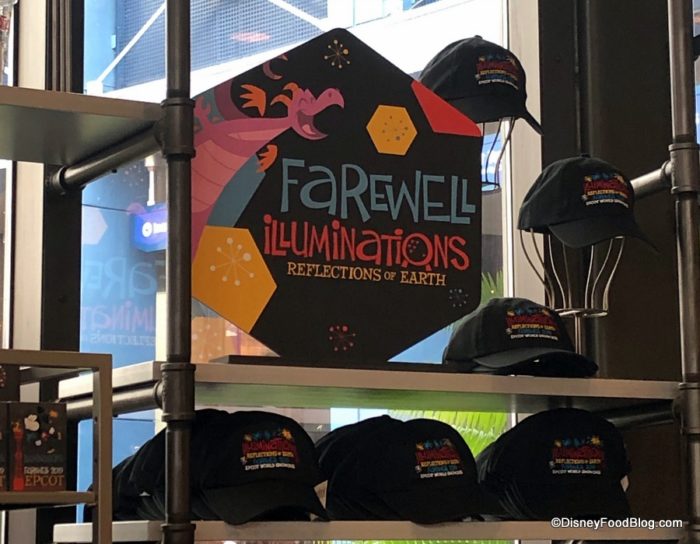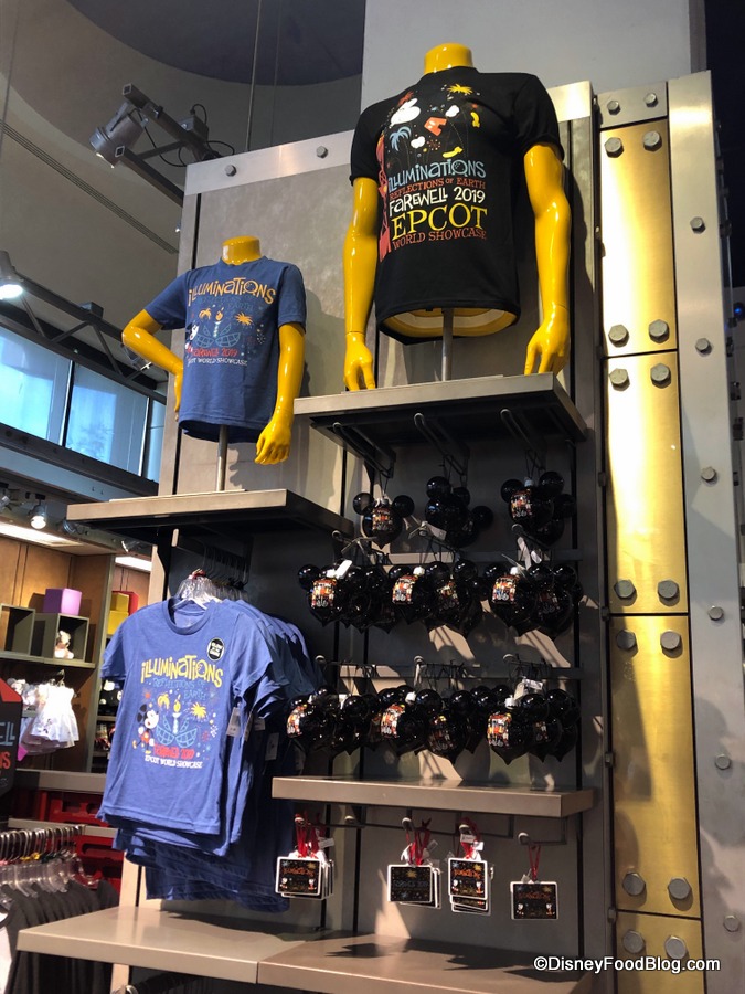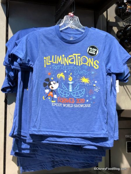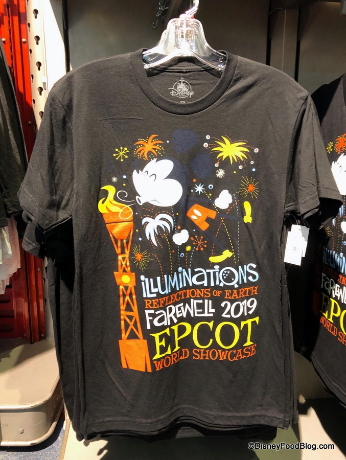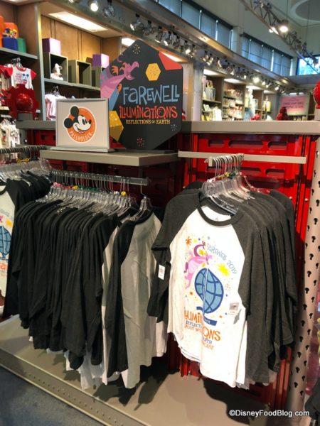 And newly arrived in Epcot today is a line of “Farewell IllumiNations” merchandise for guests who wish to pick up a souvenir to remember this unique and beautiful fireworks, light, and laser show that has capped off fun days at Epcot since late 1999.