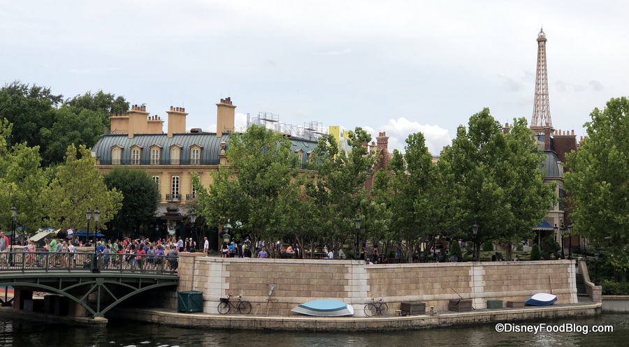 Moving right along to the France Pavilion, construction is progressing for the many changes to the area.