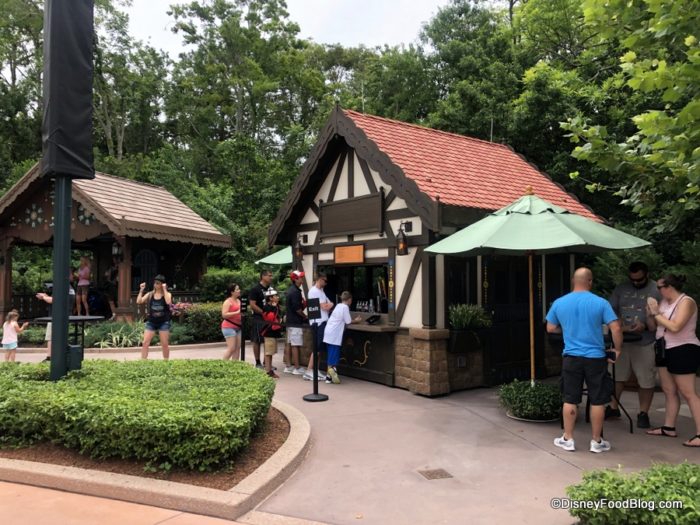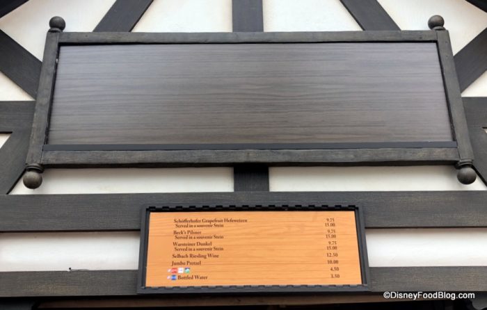 Making our way to the Germany Pavilion, the Bier Cart that is typically along the walkway is missing. They reopened the Pavilion’s Flower and Garden booth (left nameless for now) with the beverages and Jumbo Pretzel that were previously at the cart.