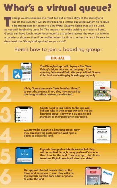 As previously announced, Galaxy’s Edge will utilize a virtual queue system so the land isn’t completely overwhelmed with guests. Before you visit the park, you’ll need to download the Disneyland app. Once you arrive, you can check the app or signs to find out whether you’ll need to join a boarding group to visit the land that day.