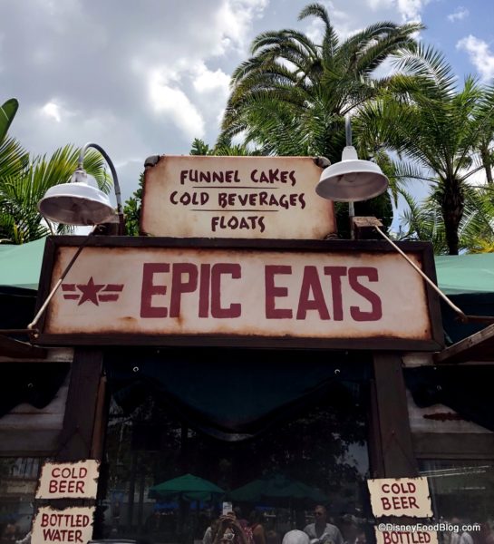 How about at the “new” Epic Eats?! The “new” is in quotes, though, because Disney’s Hollywood Studios guests will likely recognize that the name “Epic Eats” has simply replaced “Oasis Canteen” at this snack kiosk in Echo Lake, located just outside of the Indiana Jones Epic Stunt Spectacular.