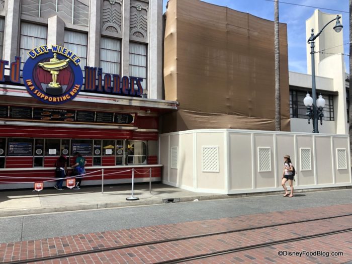 In Disney California Adventure’s Hollywood Land, some major construction is taking place between Award Wieners and Mickey’s PhilharMagic. Award Wieners’ seating area is completely restricted, so you might need to grab your food and sit elsewhere.