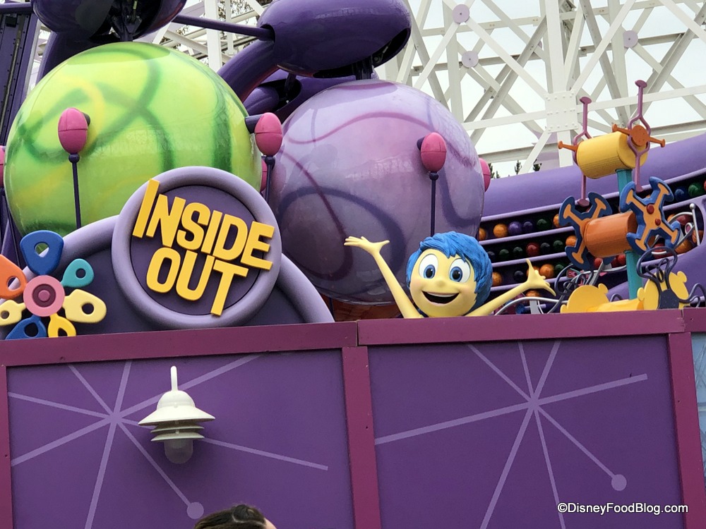 Making our way to Pixar Pier, we noticed a change to the Emotional Whirlwind attraction! Joy from the beloved film Inside Out is now part of the ride’s colorful theming.