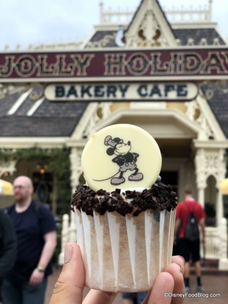 Also at Jolly Holiday, we HAD to try the new Steamboat Willie Cupcake! Could it be any more adorable?? (Spoiler alert: it can’t.)