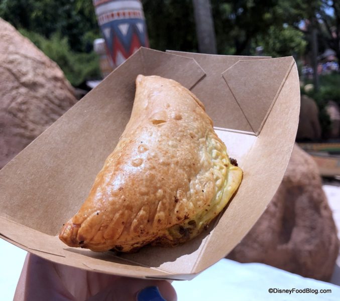 This dish costs $5.49 or a Disney Dining Plan snack credit, and we thought the portion was solid for the price. (This thoughtful dish reminds us, in fact, of something you might find during the Epcot Food and Wine Festival.) We can highly recommend the Nigerian Meat Pie for a midday or afternoon snack!
